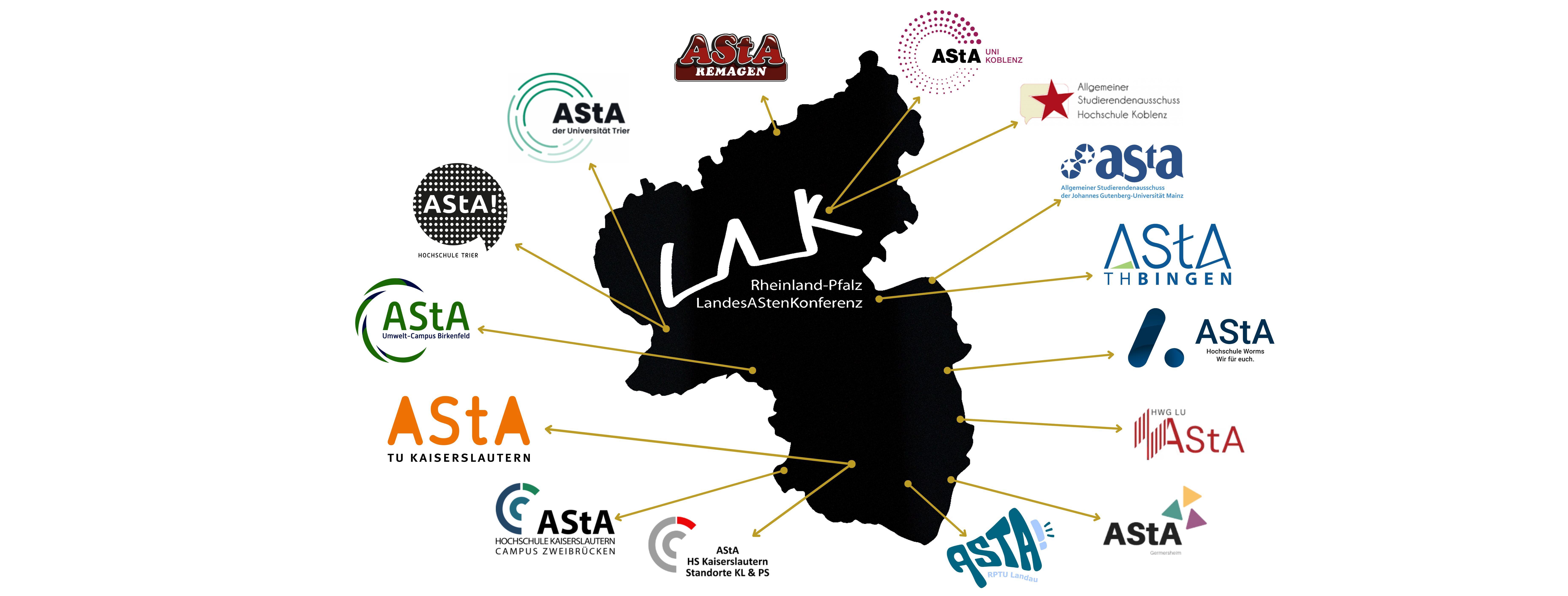 Die LandesAStenKonferenz Rheinland-Pfalz (LAK RLP) ist ein Zusammenschluss der Verfassten Studierendenschaften der rheinland-pfälzischen Hochschulen und Universitäten auf Grundlage von §107 Abs. 5 des Hochschulgesetzes. Die LAK ist die Interessenvertretung der 120.000 rheinland-pfälzischen Studierenden gegenüber politischen und gesellschaftlichen Akteur:innen.